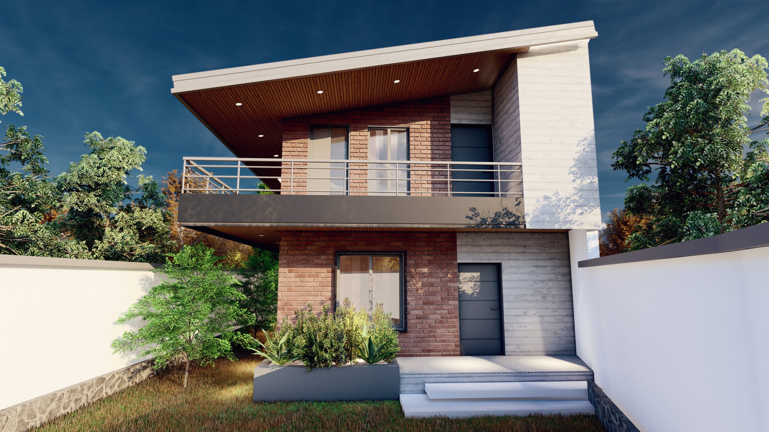 طراحی این ویلا بهصورت دوبلکس انجام شده و در عین سادگی فرمی، از جزئیات معمارانهای بهره میبرد که به آن شخصیت منحصربهفردی بخشیده است. نمای پروژه ترکیبی از آجر و بتن اکسپوز است که تضاد بصری مطلوبی ایجاد کرده و با محیط طبیعی پیرامون بهخوبی هماهنگ شده است.